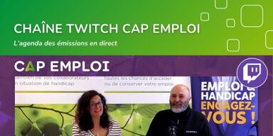 Le Cap emploi 57 a créé une chaîne Twitch Cap emploi afin de pouvoir dialoguer avec les publics, et en direct. Tous les mercredis à 16h, accompagné d'invité(e)s, Guillaume répondra aux questions sur le handicap et sur l'emploi !