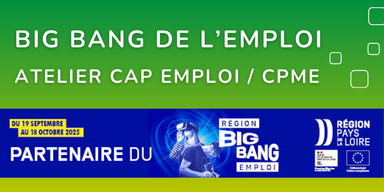 L'évènement Big Bang de l'emploi se déroulera les 19 et 20 septembre à la Roche sur Yon. A noter dans votre agenda : un atelier dédié au handicap et à l'emploi, présenté par Cap emploi en partenariat avec la CPME.